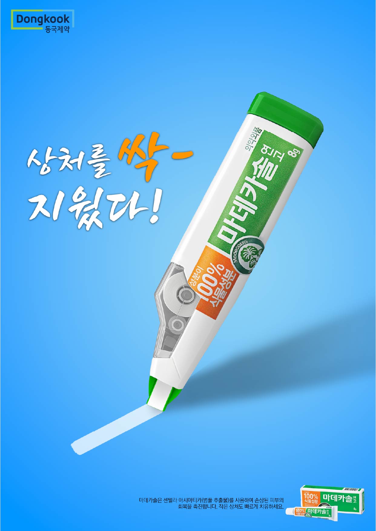 ‘마데카솔이 상처를 싹 지운다’는 개념을 표현했습니다.