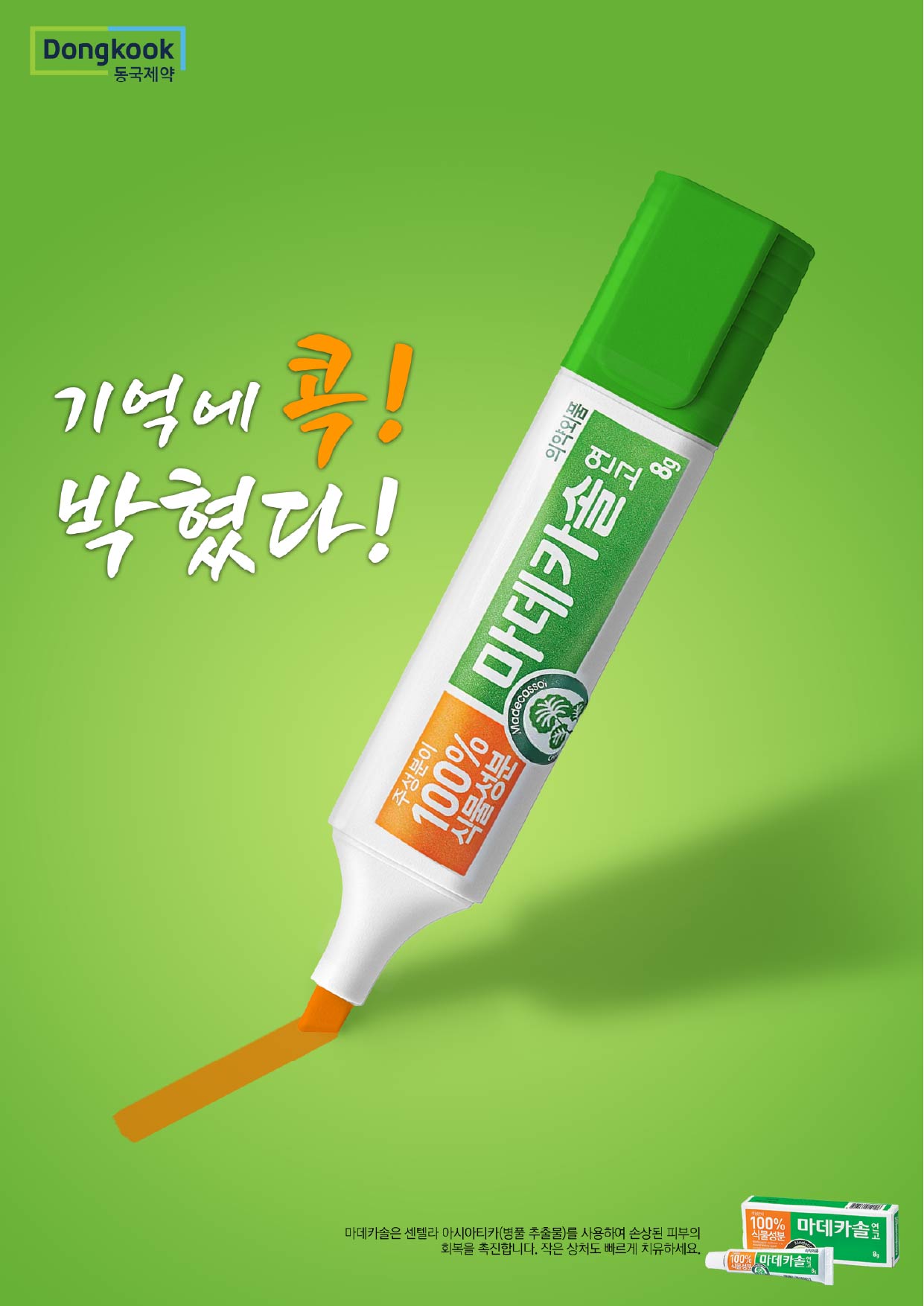 또한 형광펜 요소를 함께 사용하여 상처가 생겼을 때 마데카솔을 떠올리라는 메시지를 전달합니다.